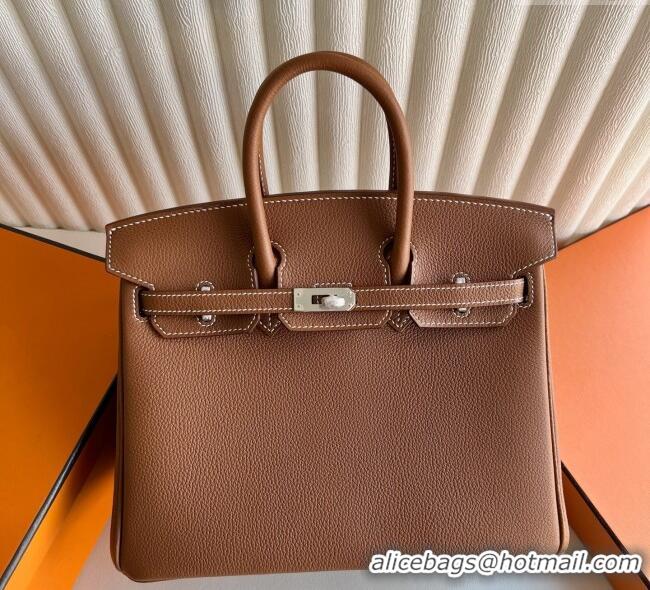 Your Position: Home > Hermes Handbag > Hermes Birkin 25CM > Original Discount Hermes Birkin 25cm Bag in Togo Calfskin Leather HE25 Brown/Silver 2025 (Full Handmade)