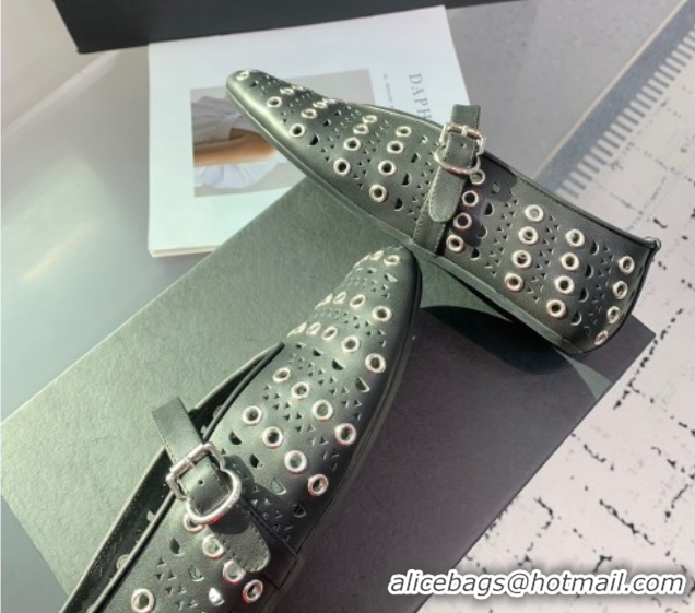 > Shoes Plaza > Alaia Shoes > Perfect Alaia Ballet Flat in Openwork Leather with Eyelet Black 1223006