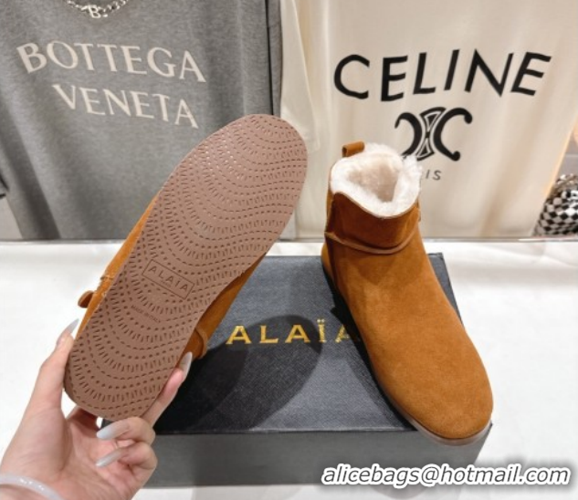 > Shoes Plaza > Alaia Shoes > Perfect Alaia Suede and Wool Flat Ankle Boots Yellow AL102903 1029112