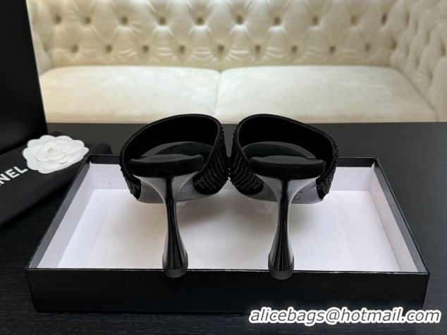 Grade Quality Chanel Suede & Strass Heel Slides Sandal 9cm G46904 Black 2026