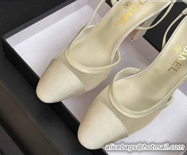 Good Quality Chanel Mesh & Grosgrain Slingbacks Pump 9cm G45509 Ivory 2026