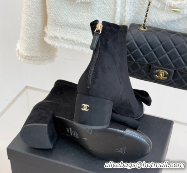 Stylish Chanel Suede and Calfskin Heel Ankle Boots with Bow Black CH110303 1103124