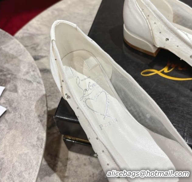 Perfect Christian Louboutin Sweetie Jane Sparkling Ballerinas Flat in Mesh and Strass White 1030108