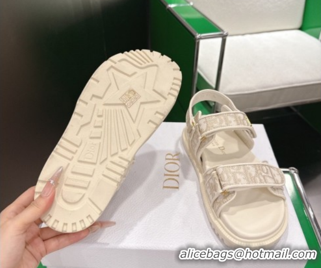 Shop Cheap Dior Dioract Flat Sandals in Oblique Embroidered Cotton Beige 0302126