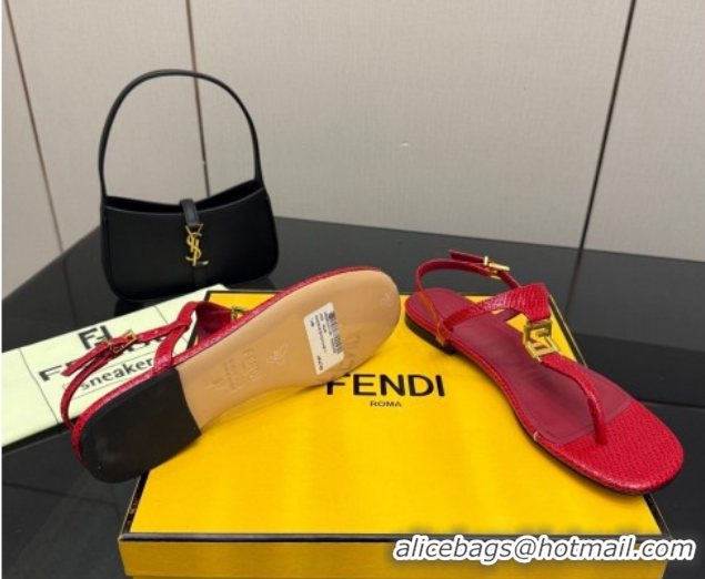 Shop Cheap Fendi Delfina Flat Thong Sandals in Embossed Leather FE030201 Red 2026