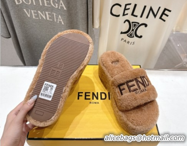 Sumptuous Fendi Sunshine Platform Slides Sandal in Shearling Wool Light Brown 2025 FE103001