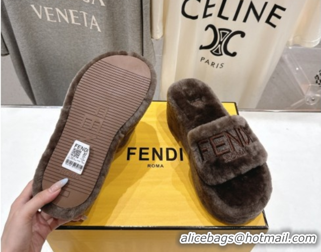 Perfect Fendi Sunshine Platform Slides Sandal in Shearling Wool Grey 2025 FE103001 1030008
