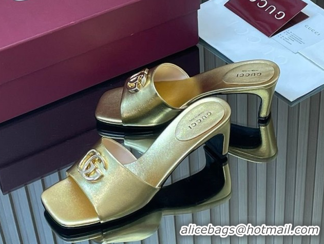 Luxurious Gucci Calfskin Leather Heel Slides Sandal 5.5cm Gold GG030503 2026