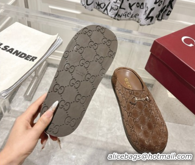 Grade Quality Gucci GG Suede Flat Mules with Horsebit Coffe Brown 836057 1020012