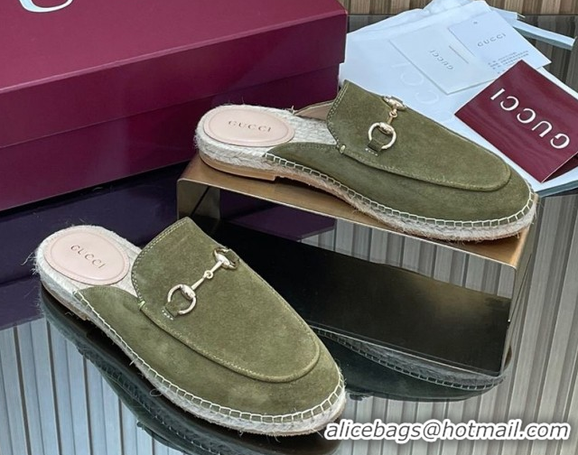 Duplicate Gucci Suede Flat Espadrille Mules with Horsebit GG121805 Green 2026