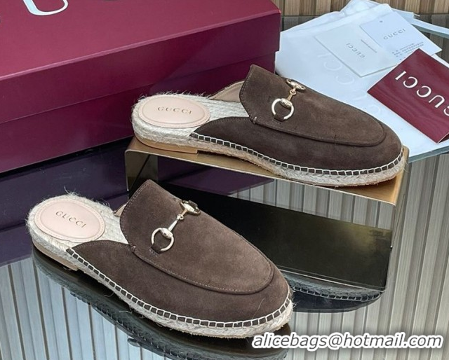 Fashion Gucci Suede Flat Espadrille Mules with Horsebit GG121805 Chocolate Brown 2026