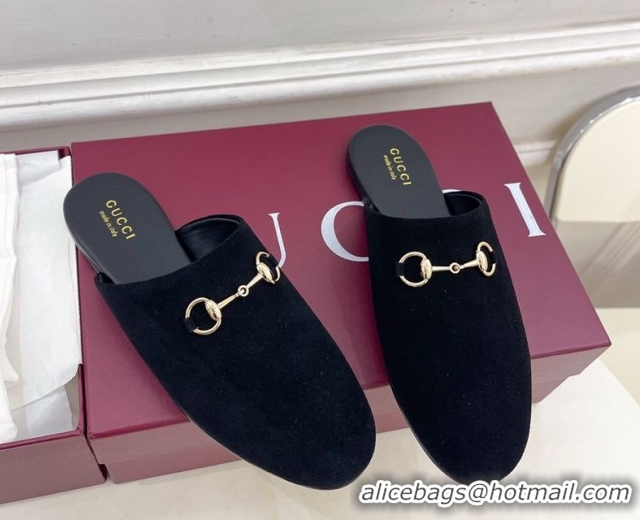Top Quality Gucci Suede Flat Mules with Horsebit Black 1020039