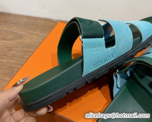 Perfect Hermes Chypre Slide Sandals in Suede Blue/Green 2025 H082008 0820075