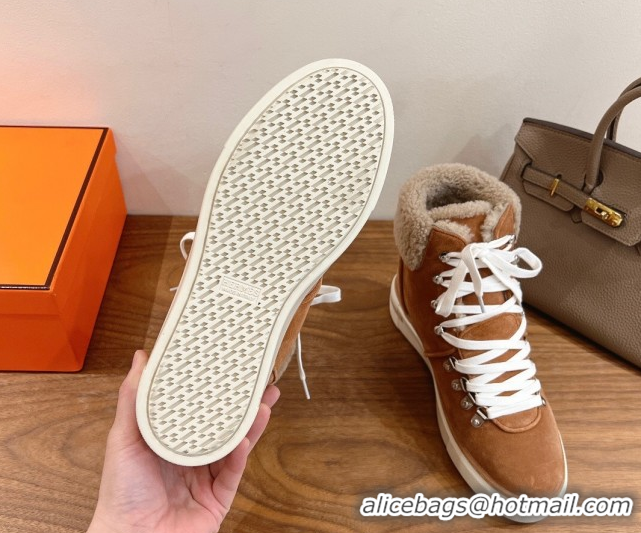 Perfect Hermes Flocon Ankle Boots in Suede and Shearling Brown 0820059