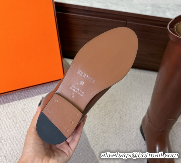 Perfect Hermes Jumping High Flat Boots in Calfskin Leather with Kelly Buckle Strap H102302 Brown 2026