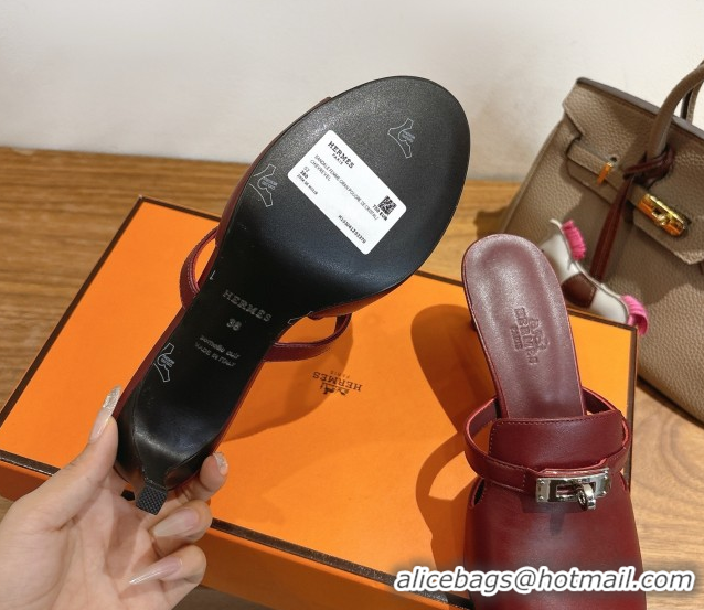 Best Grade Hermes Kelly Strap Medium Heel Slides Sandal in Calfskin Leather HS122201 Dark Burgundy 2026