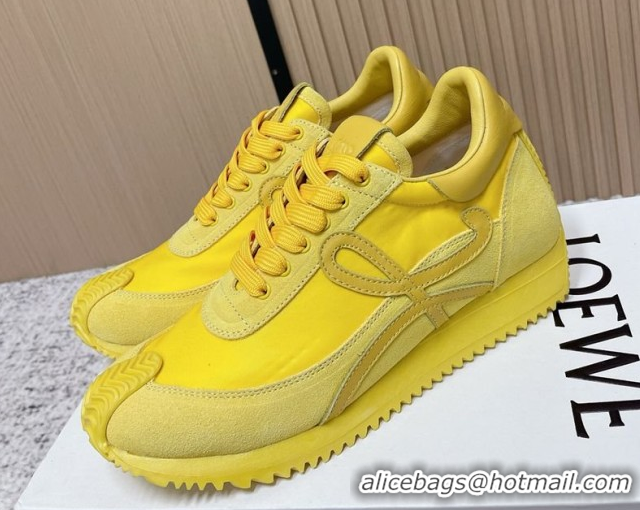 Perfect Loewe Flow Runner Sneakers in Nylon and Suede All Yellow 0226062