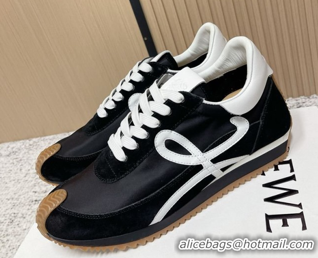 Perfect Loewe Flow Runner Sneakers in Nylon and Suede Black/White 60226020