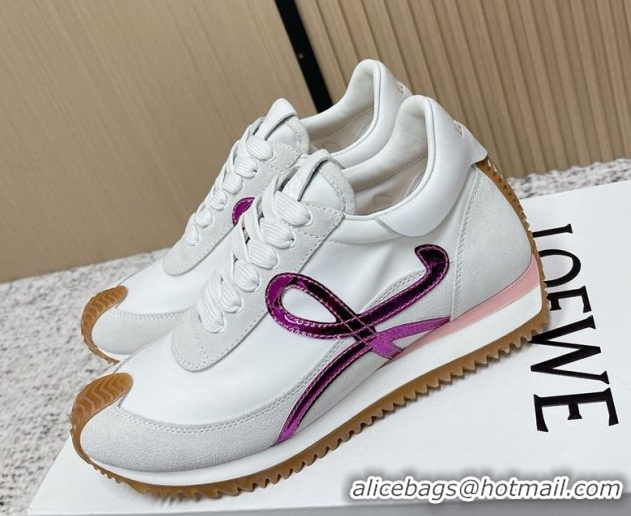 Perfect Loewe Flow Runner Sneakers in Nylon and Suede White/Purple 0226045