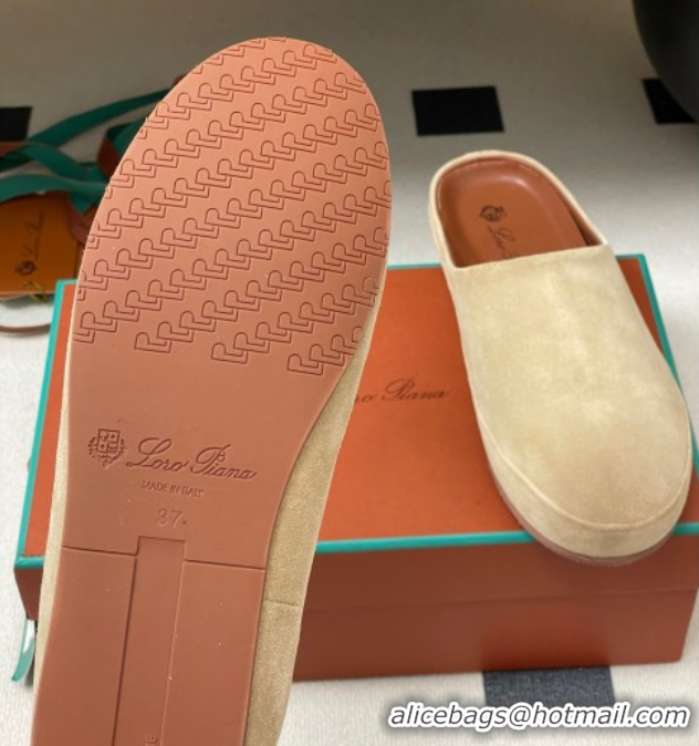 Your Position: Home > Shoes Plaza > Loro Piana Shoes > Perfect Loro Piana Tomori Sabot Flat Mules in Suede Beige 0827005