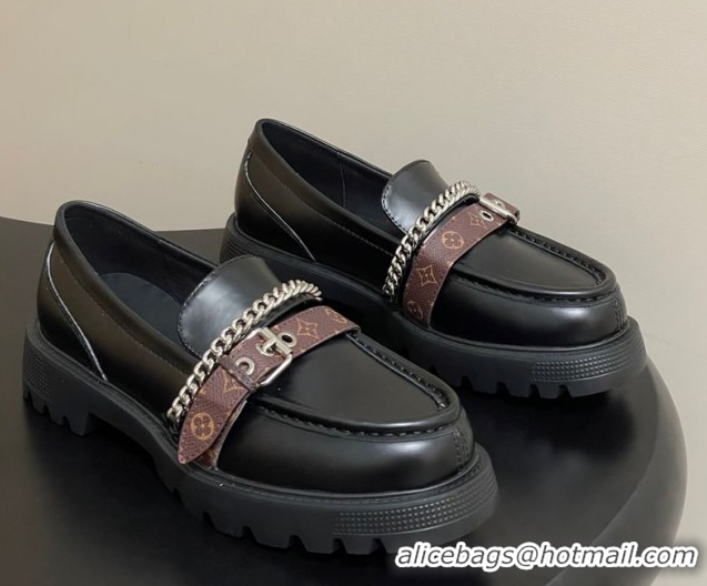 Best Grade Louis Vuitton LV Vibe Loafers with Chain and and Buckle Strap Black 1022074