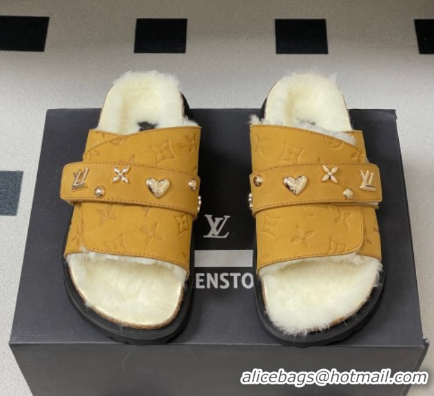 Good Looking Louis Vuitton x Birkenstock Flat Slides Sandal with Charm Strap in Suede and Wool Yellow 1022123