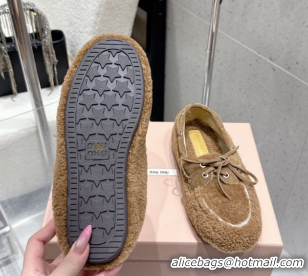 > Shoes Plaza > Miu Miu Shoes > Perfect Miu Miu Shearling Laced-up Loafers with Bow Brown2 2025 5D525E 1025019 2025