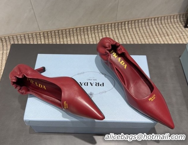 Duplicate Prada Leather Elastic Heel Pumps 5.5cm Red 1I188O 1205037 2026