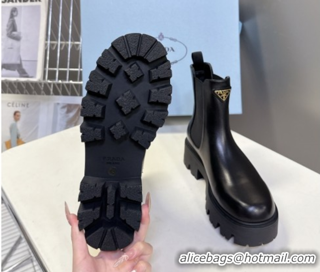 Best Product Prada Monolith Brushed Leather Ankle Boots 5.5cm Black 904018