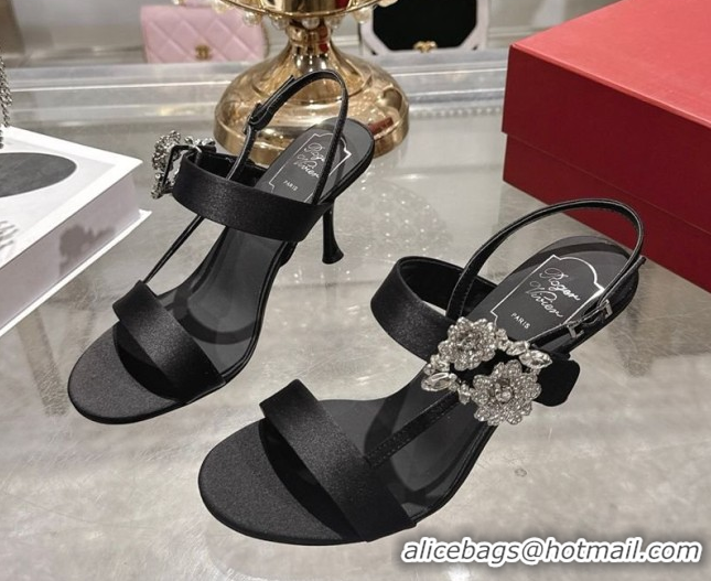 Perfect Roger Vivier Strass Flower Heel Sandals 7.5cm in Satin 0225034 Black 2026