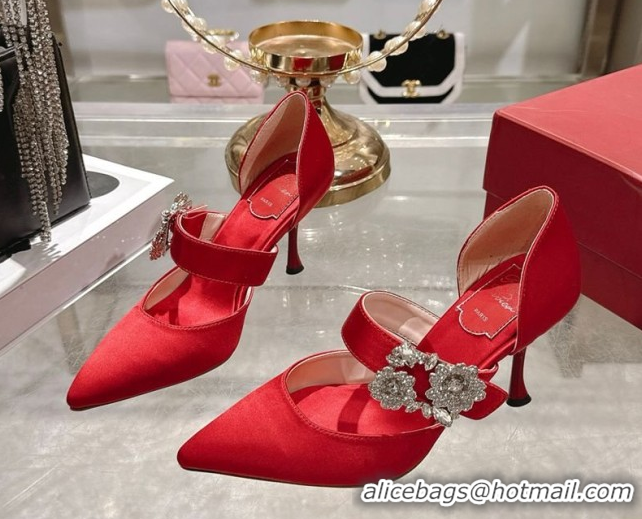 Best Grade Roger Vivier Bouquet Strass Flower Pumps 8.5cm in Satin 0225034 Black Red 2026