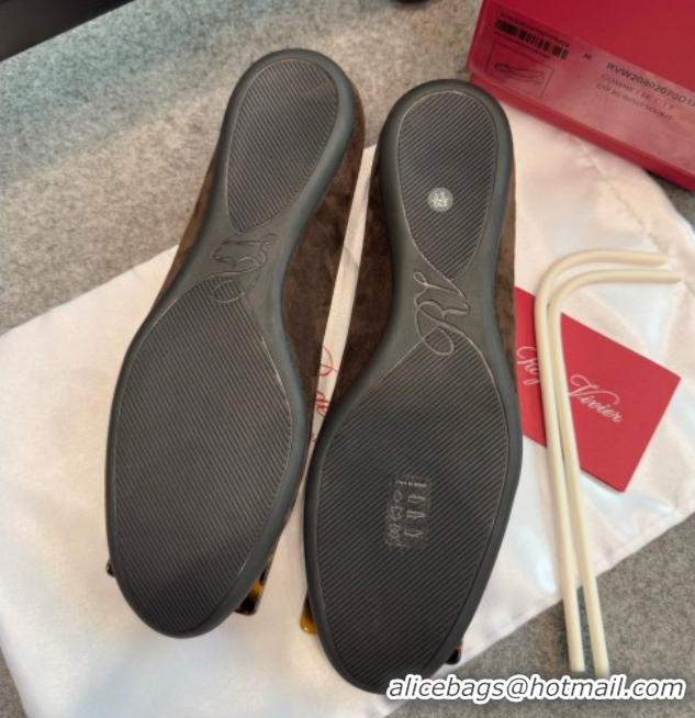 Luxury Roger Vivier Trompette Ballerinas in Suede with Buckle Dark Brown 1030068