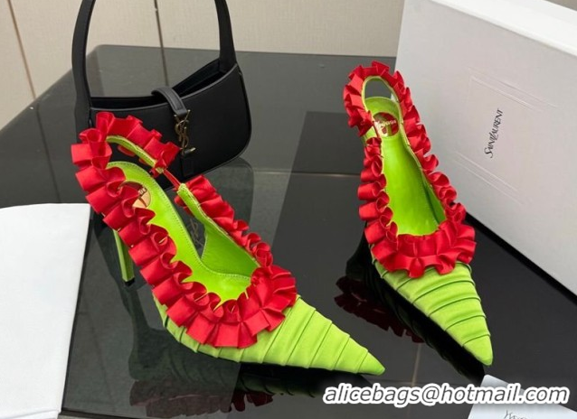 Perfect Saint Laurent MADELEINE Slingbacks Pump 10.5cm in Silk Taffeta Green/Red 2026 867272