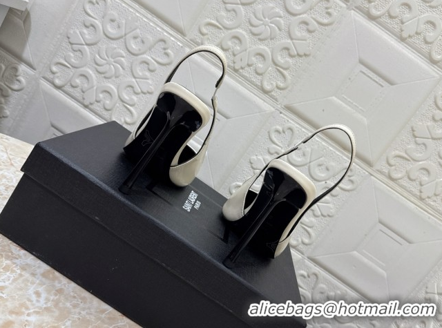 Good Quality Saint Laurent Romy Slingback Pumps 10.5cm in Patent Leather White 1028086