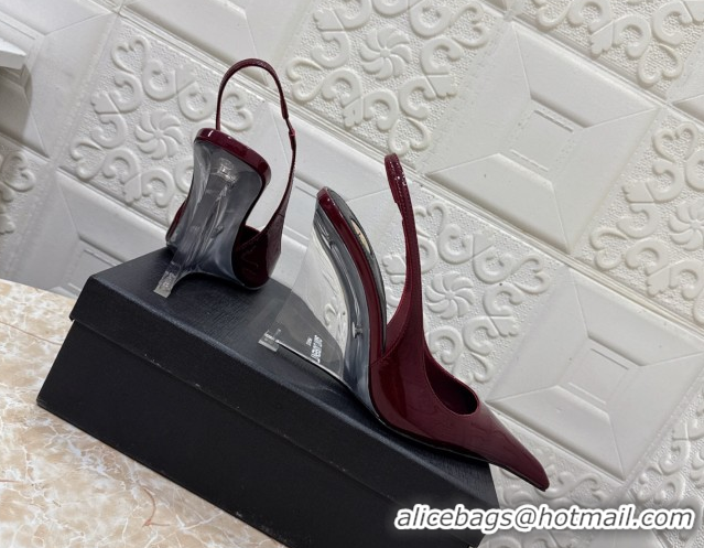 Sophisticated Saint Laurent Pointy Slingback Wedge Pumps 10.5cm in Patent Leather Burgundy 1028088