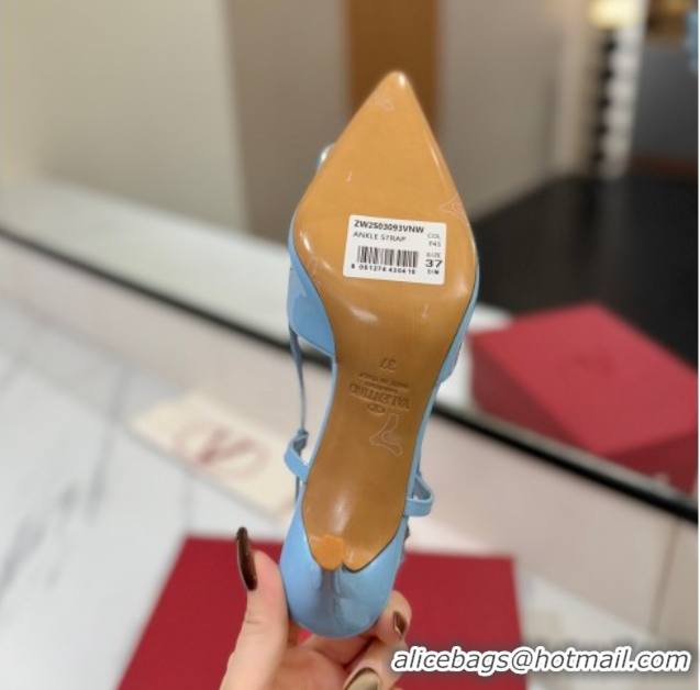 Perfect Valentino VLogo Signature Slingback Pumps 8cm in Patent Calfskin Light Blue 2025 VA082111
