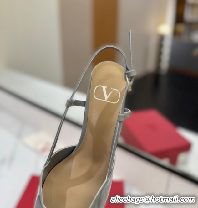 Most Popular Valentino VLogo Signature Slingback Pumps 8cm in Patent Calfskin Grey VA082111