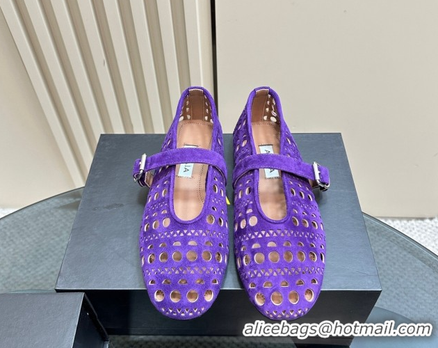 Popular Style Alaia Ballet Flat in Openwork Suede Dark Purple 1223003