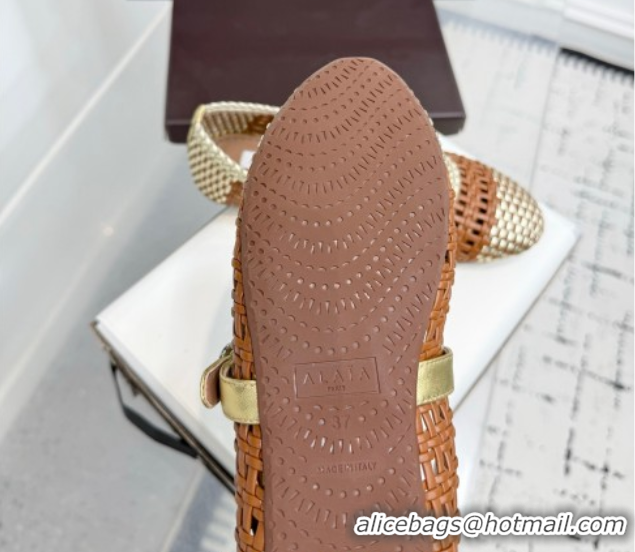 Popular Style Alaia Ballet Flats in Woven Leather Brown/Gold 0827092