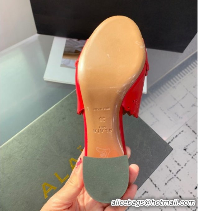 Good Product Alaia Heel Slides Sandal in Openwork Leather Red AL122302 1223036