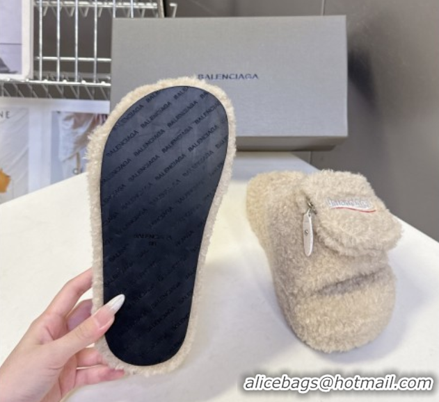 Popular Style Balenciaga Shearling-Like Platform Slides Sandal Beige 0827016