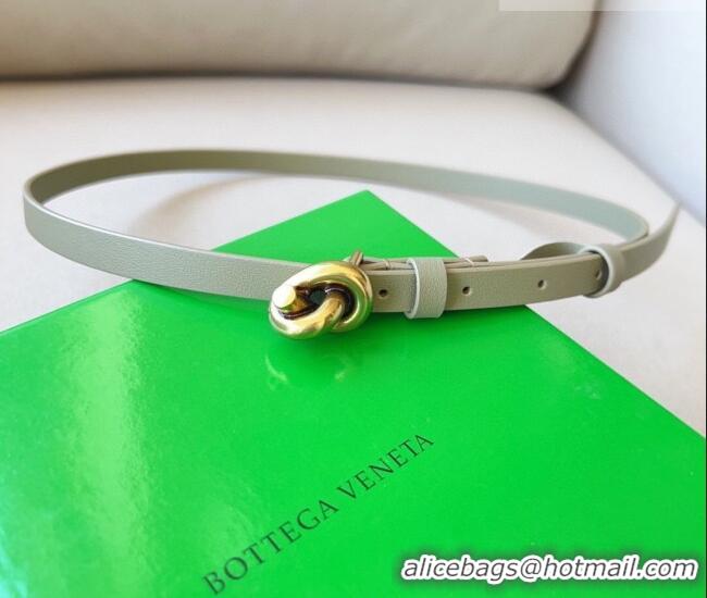 Popular Style Bottega Veneta Women's Soft Calfskin Belt 1.5cm with Knot Buckle 0315 Travertine Green/Gold 2025