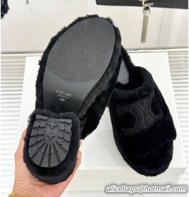 Popular Style Celine Triomphe Wool Platform Slides Sandal 8cm Black 2025 7027801