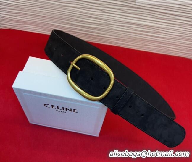 Discount Celine Twin Triomphe Belt 4.5x105cm with Pin Buckle in Suede CE031605 Black 2026