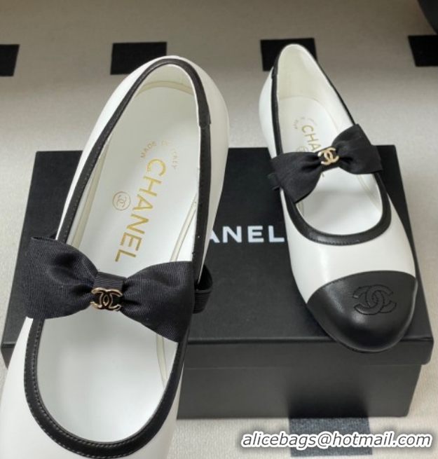 Best Product Chanel Calfskin Leather Ballet Flats with Bow CH122402 White/Black 2026