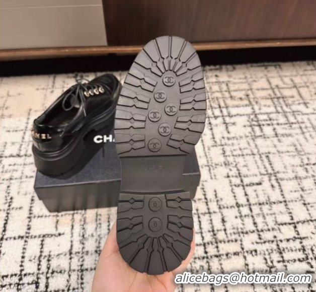 Your Position: Home > Shoes Plaza > Chanel Shoes > Shop Duplicate Chanel Calfskin Leather Laced-up Shoes 5cm Black 2025 CH103101 1031096
