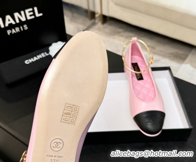 Best Grade Chanel Lambskin Leather Ballet Flats with Logo Loop G46932 Pink 2026