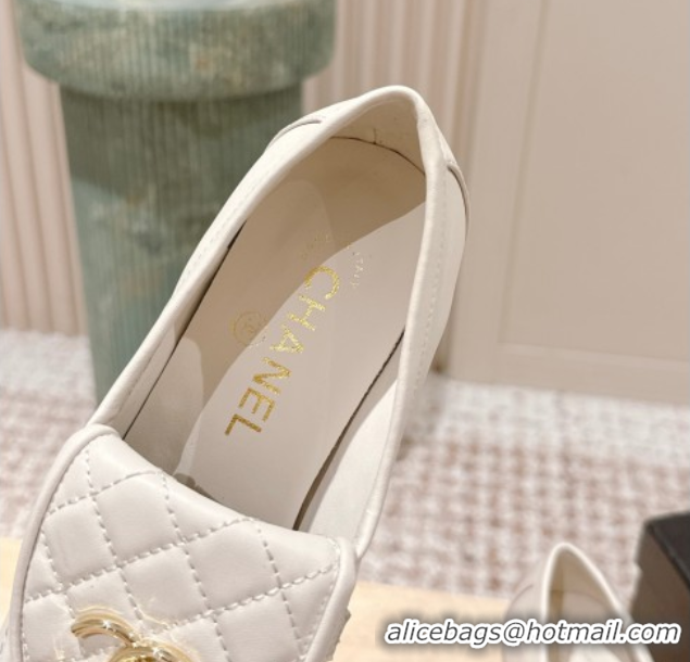 Popular Style Chanel Lambskin Platform Pumps 9cm with CC Foldover White G46692