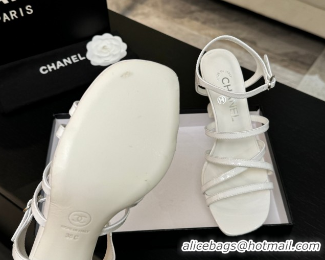 Most Popular Chanel Patent Calfskin Leather Heel Sandals 9cm G46901 White 2026