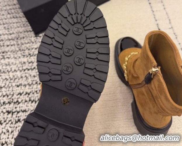 Good Quality Chanel Suede & Patent Leather Platform Ankle Boots with Chain and Buckle Brown 2025 CH110412 1104058